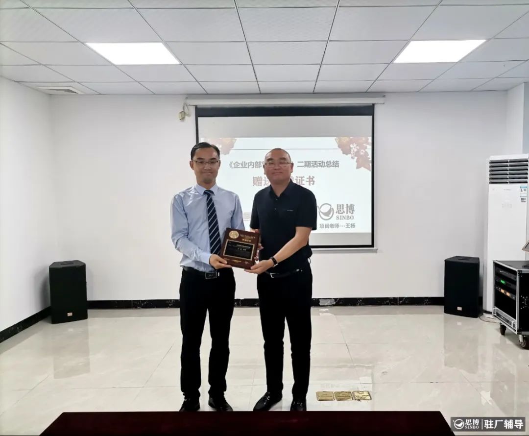 莫總首先回顧了一期、二期項目的整體實施模塊,并進行了總結。 為期一年的合作臨近結束,莫總由衷的分享了1個主題及3點改善建議: 主題:堅持執行,堅持以組織職能流程的運行,堅持以產值目標為導向的生產計劃或交付模式的運行,堅持多勞多得的增量產值激勵或增量目標激勵。 改善建議: 構建以市場為導向的營銷體系; 構建以盈利為導向的降本增效的系列活動; 構建以支撐到業績倍增的產銷研團隊的培養。 6、授予榮譽證書: