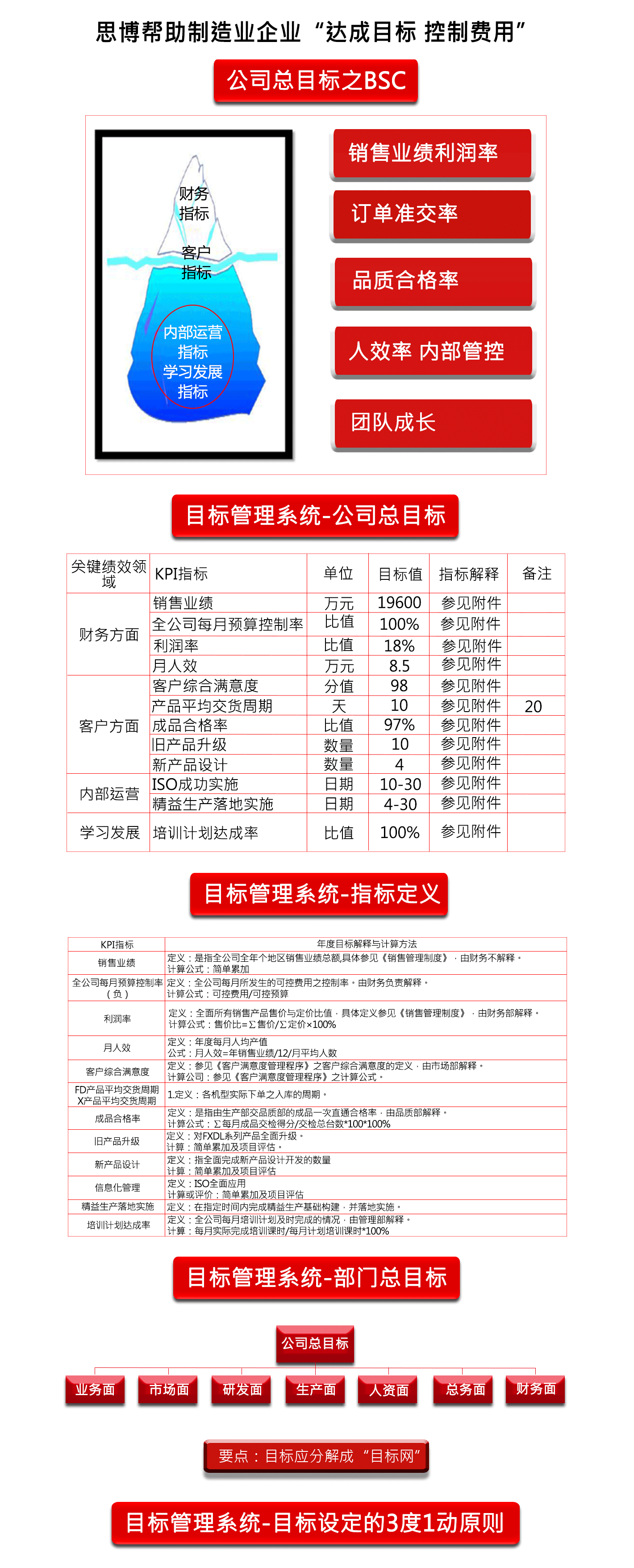 深圳市思博企業管理咨詢有限公司(sinbo) 是擁有多年管理實踐的實戰型管理咨詢企業,思博數十人的咨詢師團隊用近十年的時間潛心研究世界管理大師彼特·德魯克的目標管理及臺灣陳宗賢教授的企業經營計劃管理,同時深入日本、臺灣、歐美等知名企業學習先進管理理念及技能,結合中國企業本土化的特點,成功研究出一套適合中國國情的企業經營管理系統《企業年度經營計劃與全面預算管理》。該系統在思博團隊的潛心指導下,已成功幫助中國數百家企業實現年業績增長40%