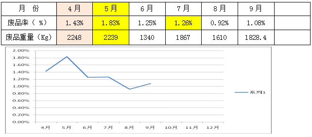 6、廢品率高達1.83%;品質控制體系不全,僅在檢驗動作上缺乏品質數據分析和持續改進;