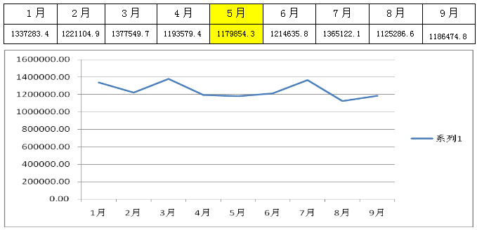 3、庫存金額下降。由1-5月份的月平均126.18萬元,現6-9月的月平均下降到122.28萬元,與5月份前的126.18萬元相比平均每月下降3.9萬元。其中8月份同比7月份下降了23.98萬元,同比下降了17.5%;