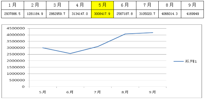 4、銷售業績增長。銷售業績突破400萬元,8月份比7月份增長了96.1萬元,9月份同比7月份增長了106.49萬元。同比7月份增長了34.30%;